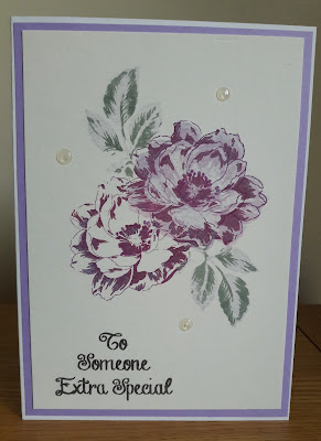 A very simple and clean card using a variety of purple inks. I added some glossy accents as pearl drops and the sentiment is from Phill Martins chalkboard collection.
